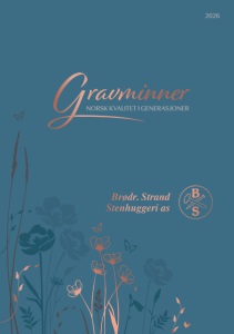 Solid bedrift med lange tradisjoner Vi ønsker med denne brosjyren å tilby våre tjenester når Dere nå står ovenfor et valg av gravminne. Med vår personlige rådgivning vil vi være behjelpelig med å gjøre det riktige valget. Brødr. Strand Stenhuggeri as designer og produserer gravminner som dekker det ønsket pårørende måtte ha. Vi har gravminner i alle steinsorter, fasonger og prisklasser. Vi leverer over hele landet. I brosjyren er prisene oppgitt i minste størrelse og inkludert inngravering i lakk eller gull. Se prisliste lenger bak i brosjyren for mere utfyllende informasjon om tilbehør til gravminnet som bedplater, lykter og spurver blant annet. I tillegg til produksjon av nye gravmonumenter har vi et godt utbygd serviceapparat. Med egne servicebiler utfører vi navnetilføyelser og omsliping av gravminner. Vi utfører også service på kirkegården som oppussing, rens, vask, flytting, oppretting og bolting av eldre gravmonumenter. Spør oss om råd og veiledning. Vi er her for Dere. Brødr. Strand Stenhuggeri as Strandvegen 653, 6490 Eide Tlf: 71 29 80 12 post@br-strand.no www.br-strand.no Design eget gravminne på våre ne sider: br-strand.no